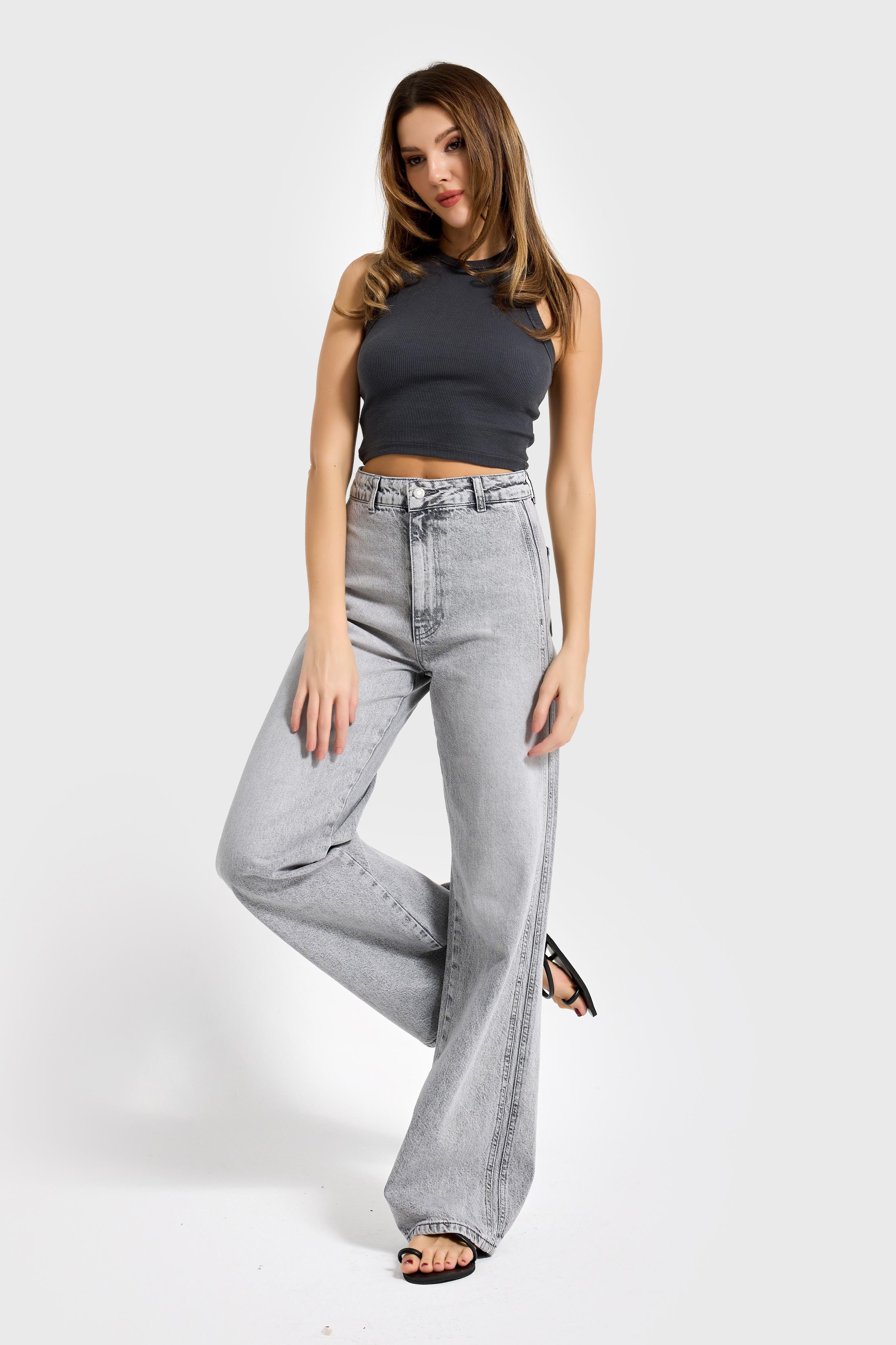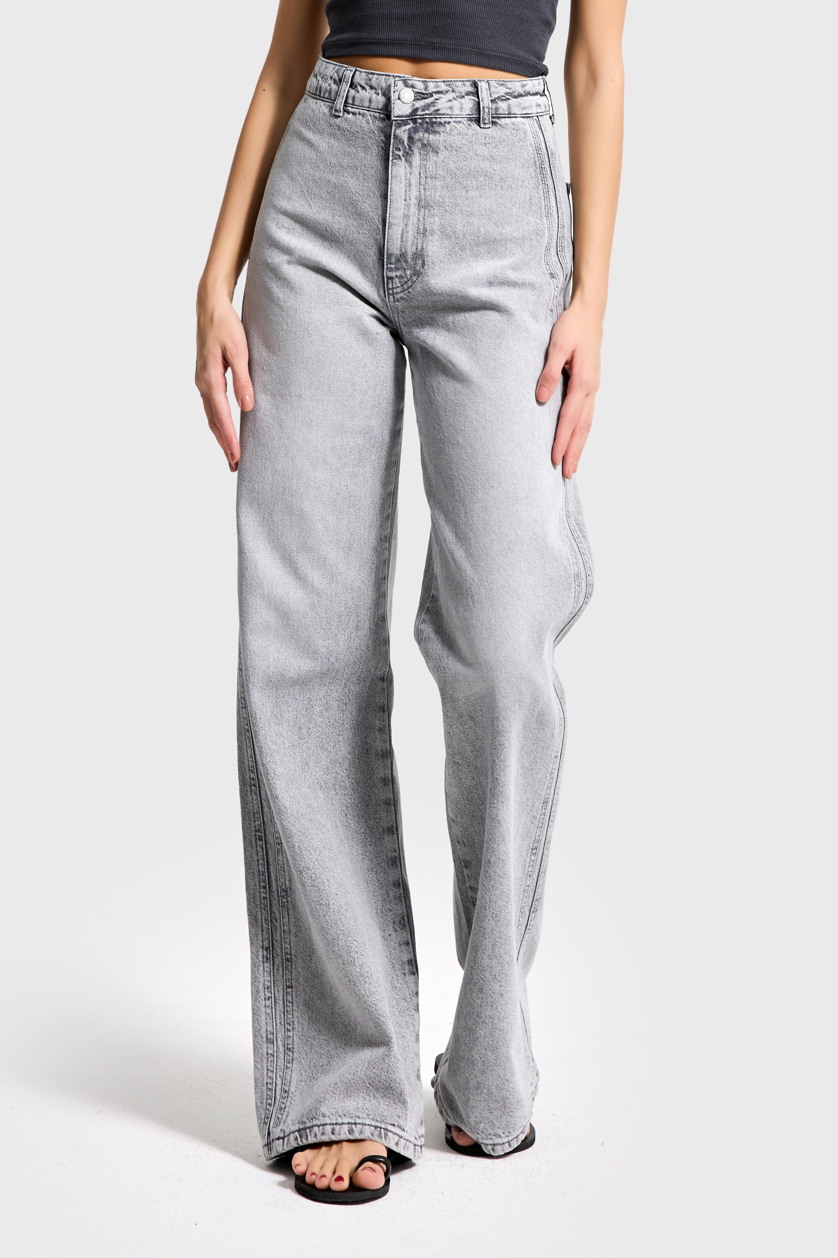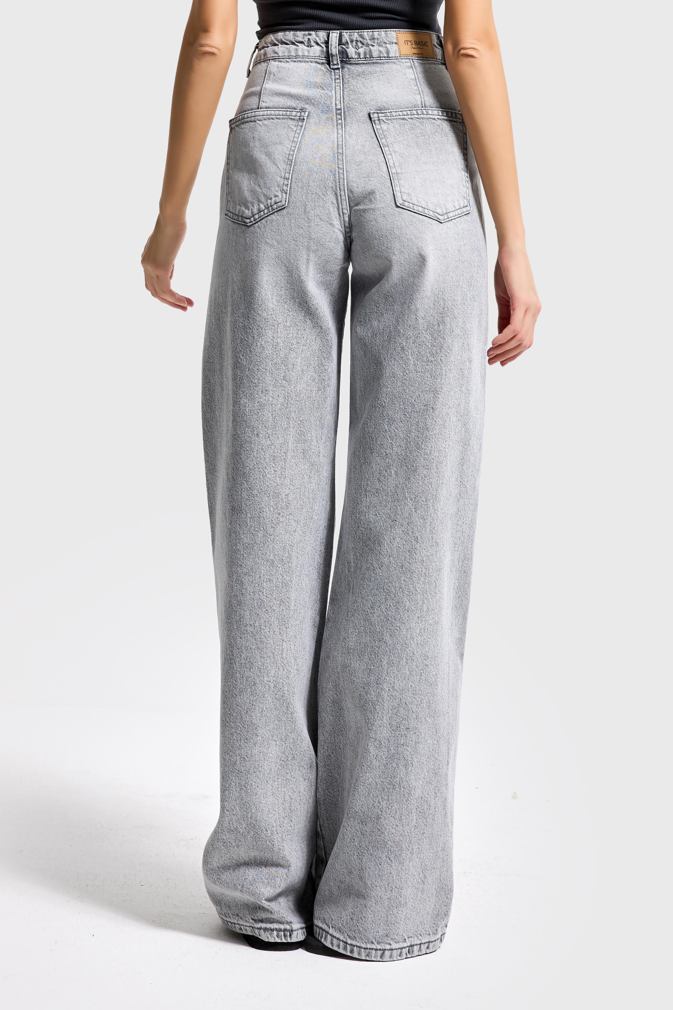 LOOSE MID RISE JEANS - LIGHT GRAY