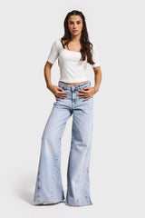 For dark or colored denim, always wash at a low temperature, inside out, with similar colors.