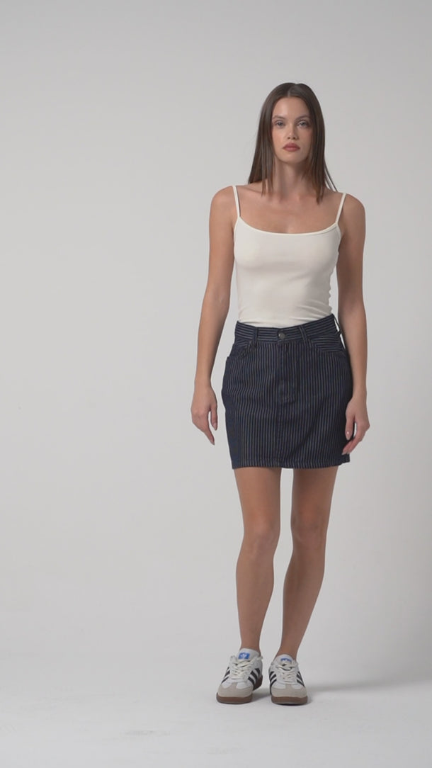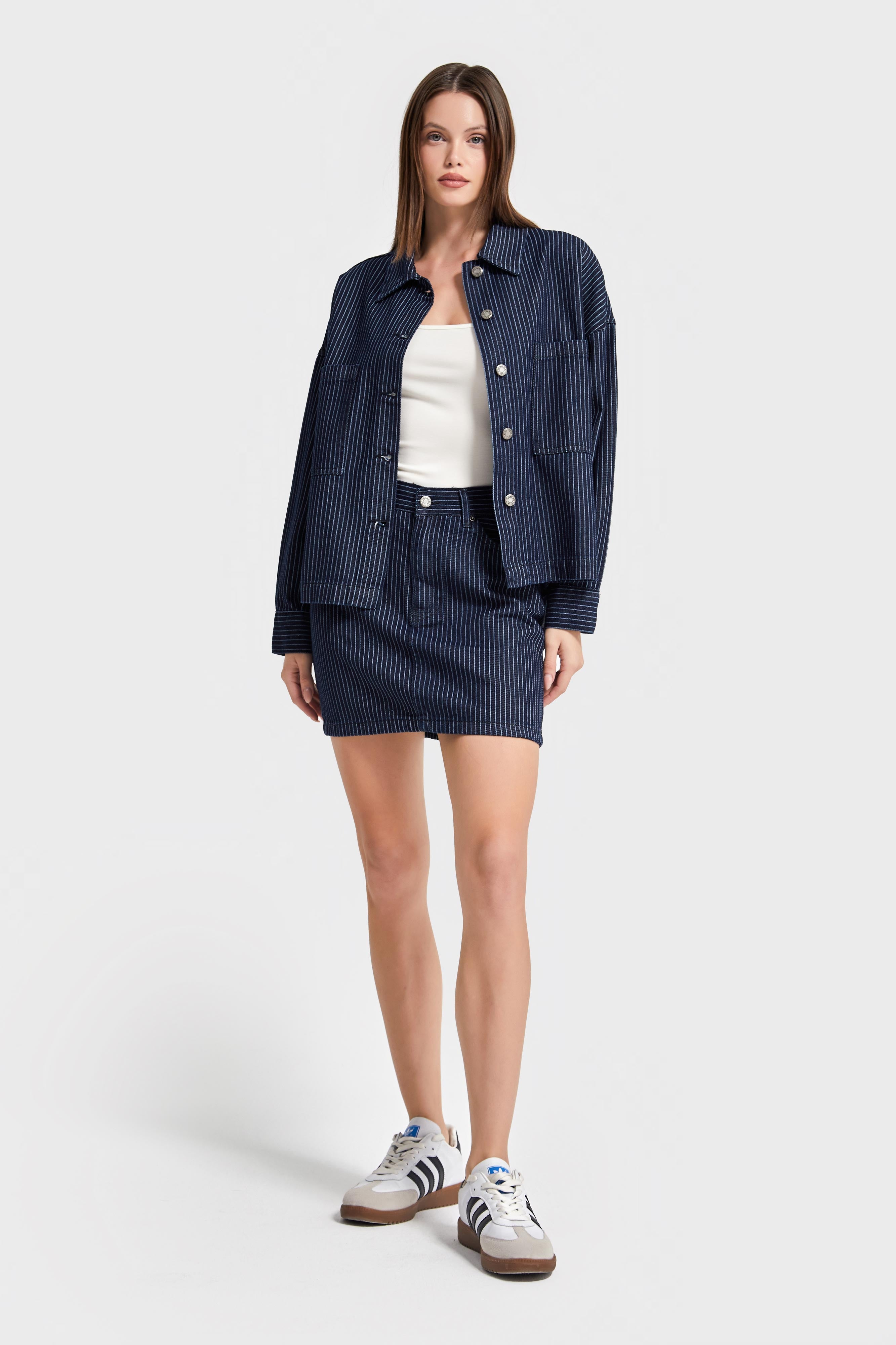 Mini Pinstriped Denim Skirt